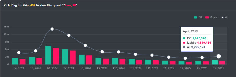 Có gần 4 triệu người tìm kiếm và truy cập Bong88 trong tháng 4/2025