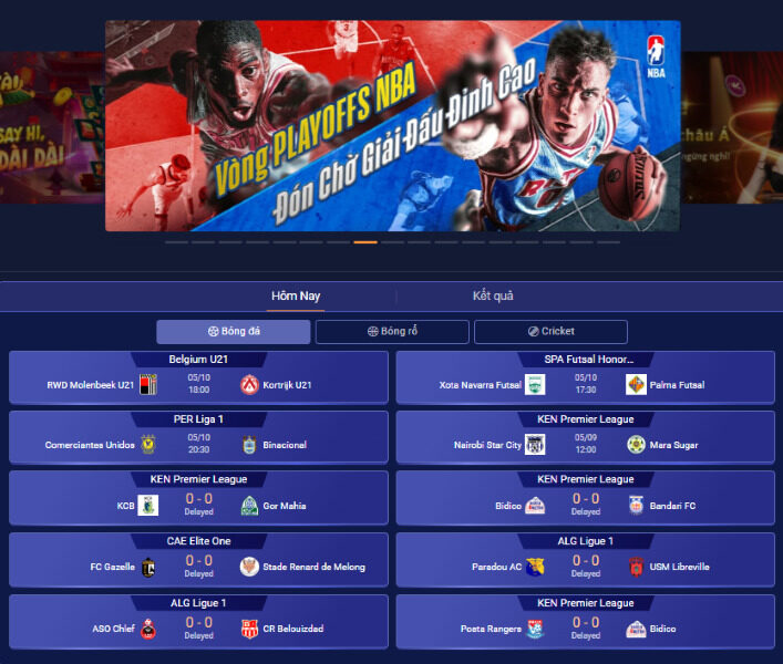 Ngoài bóng đá, bạn còn có thể đặt cược các môn hấp dẫn như bóng rổ, tennis, cầu lông và cả eSports. Giao diện dễ theo dõi, cập nhật tỉ số và diễn biến trận đấu nhanh chóng.