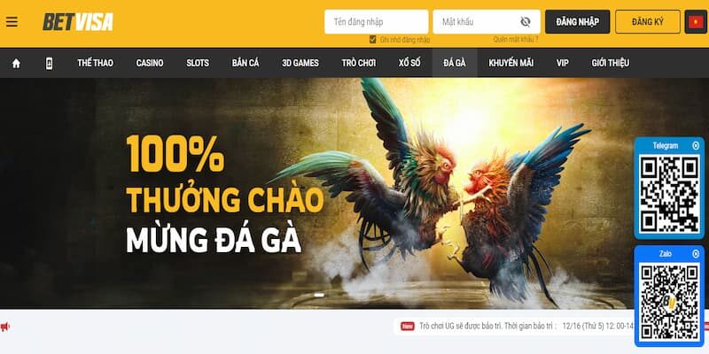 Betvisa là một trong những nhà cái uy tín nhất Việt Nam cung cấp nhiều loại hình cá cược, bao gồm đá gà trực tuyến. Đá gà Betvisa là hình thức cược trực tuyến, nơi các kê thủ có thể theo dõi và tham gia đặt cược vào kết quả các trận đấu đá gà thật qua video trực tiếp.